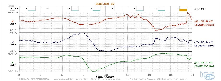 Create lists from daily (minute) geomagnetic data (from 1991 jan. 02. ----> today)
